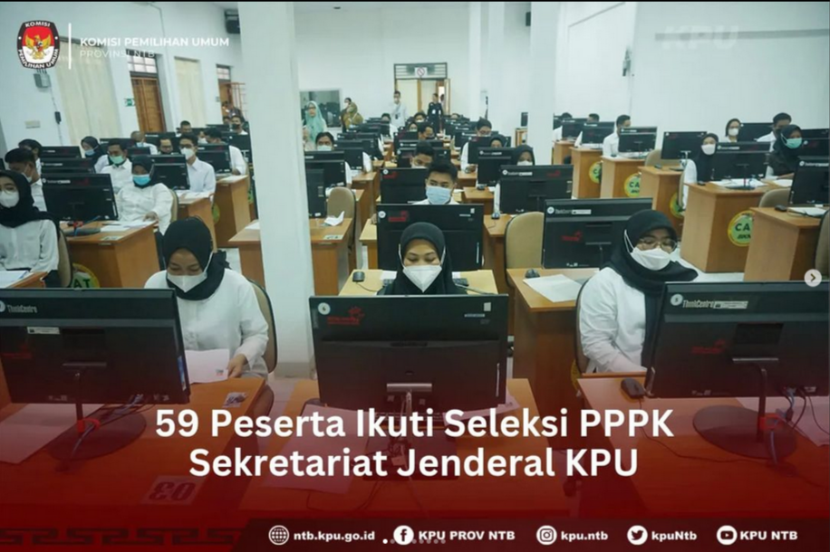 Sebanyak 59 Peserta Ikuti Seleksi Pegawai Pemerintah dengan Perjanjian Kerja (PPPK) Tenaga Teknis Sekretariat Jenderal KPU. Seleksi dilaksanakan oleh KPU Provinsi NTB bertempat di UPT BKN Mataram dimulai pada tanggal 28-29 Maret 2023.