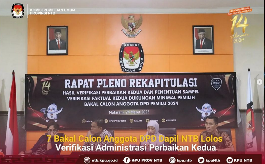 7 Bakal Calon Anggota DPD Dapil NTB Lolos Verifikasi Administrasi Perbaikan Kedua