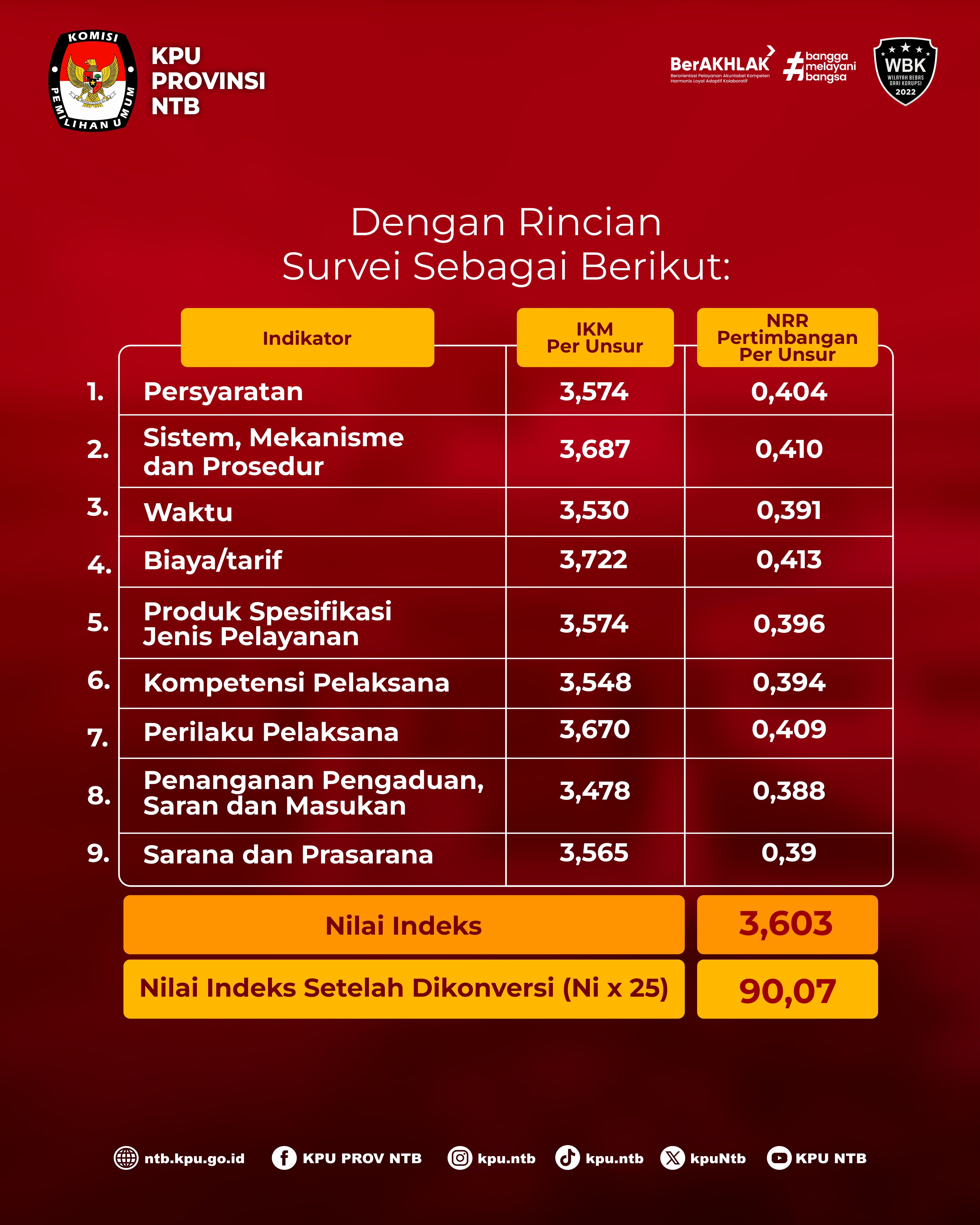 Nilai Survei Kepuasan Masyarakat Terhadap Pelayanan Informasi di KPU Provinsi NTB