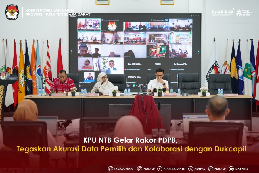 KPU Provinsi NTB mengadakan Rapat Koordinasi (Rakor) Pemutakhiran Data Pemilih Berkelanjutan (PDPB) se-NTB secara daring, Kamis (18/9). Dalam forum ini, Ketua Divisi Partisipasi Hubungan Masyarakat dan SDM Agus Hilman menekankan pentingnya akurasi data pemilih melalui pemutakhiran yang dilakukan secara berkala, sekaligus memperkuat kolaborasi dengan Dinas Kependudukan dan Pencatatan Sipil (Dukcapil).
