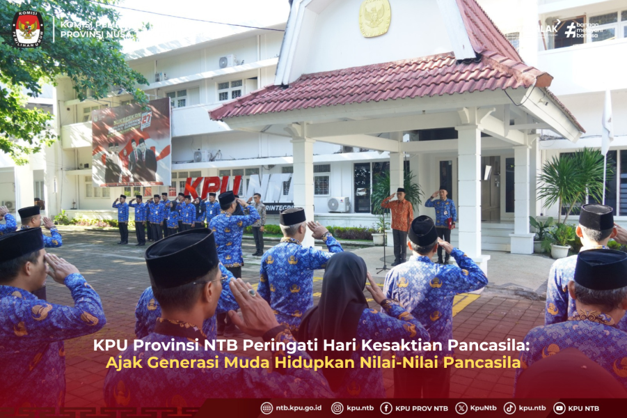 Komisi Pemilihan Umum (KPU) Provinsi NTB memperingati Hari Kesaktian Pancasila yang jatuh pada 1 Oktober 2025 dengan menggelorakan semangat kebangsaan serta mengajak seluruh elemen masyarakat, khususnya generasi muda, untuk terus menghidupkan nilai-nilai Pancasila dalam kehidupan sehari-hari.