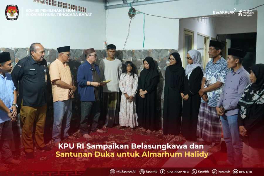 Anggota Komisi Pemilihan Umum Republik Indonesia (KPU RI) Parsadaan Harahap melakukan kunjungan ke Provinsi Nusa Tenggara Barat (NTB), Kamis, (15/10) dalam rangka menyampaikan belasungkawa atas wafatnya almarhum Bapak Halidy, Anggota KPU Provinsi NTB. Dalam kunjungan tersebut, ia juga menyerahkan santunan duka dari keluarga besar KPU se-Indonesia kepada pihak keluarga almarhum.