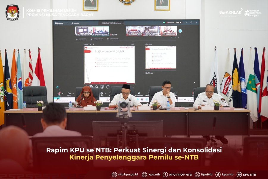 Komisi Pemilihan Umum (KPU) Provinsi Nusa Tenggara Barat (NTB) menggelar Rapat Pimpinan (Rapim) bersama KPU Kabupaten/Kota se-NTB, Senin (20/10), secara daring. Kegiatan rutin yang ketiga ini bertujuan memperkuat koordinasi dan konsolidasi kelembagaan penyelenggara pemilu di daerah serta mempererat sinergi antara KPU Provinsi dan KPU Kabupaten/Kota se NTB.