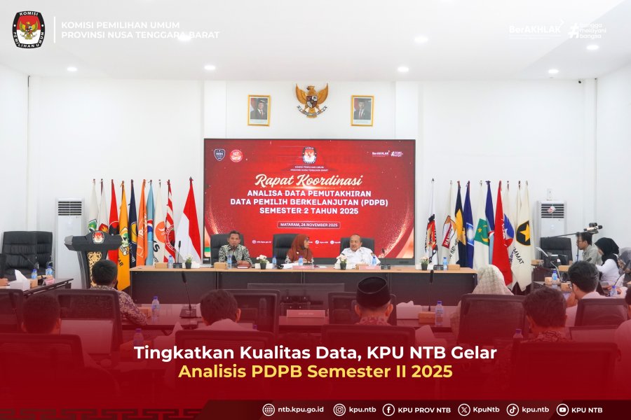 KPU Provinsi NTB menggelar kegiatan Analisa Data Pemutakhiran Data Pemilih Berkelanjutan (PDPB) Semester II Tahun 2025, Senin (24/11), bertempat di Ruang Gedung B KPU NTB. Kegiatan ini menandai komitmen KPU dalam menyiapkan data pemilih yang akurat dan berkualitas sebagai fondasi penyelenggaraan pemilu yang kredibel.