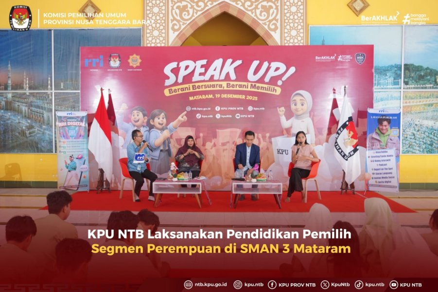 KPU Provinsi NTB bersama RRI Mataram menggelar kegiatan Pendidikan Pemilih bagi Pemilih Pemula Segmen Perempuan bertajuk “Speak Up! Berani Bersuara, Berani Memilih”. Kegiatan ini dilaksanakan SMAN 3 Mataram Jumat (19/12).