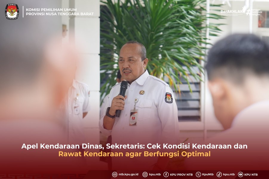 KPU Provinsi NTB melaksanakan apel Kendaraan Dinas, Senin (26/1) di Halaman Kantor KPU Provnsi NTB. Sekretaris KPU Provinsi Nusa Tenggara Barat Mars Ansori Wijaya menegaskan pentingnya pengecekan kondisi dan perawatan kendaraan dinas agar dapat berfungsi optimal dalam menunjang pelaksanaan tugas-tugas kantor.