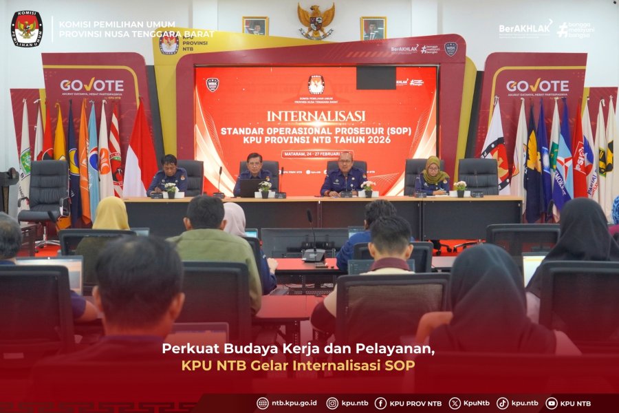 KPU Provinsi NTB menggelar kegiatan Internalisasi Standar Operasional Prosedur (SOP), Selasa (2/24). Kegiatan yang akan berlangsung selama empat hari kedepan mulai dari tanggal 24 sampai dengan 27 Februari.