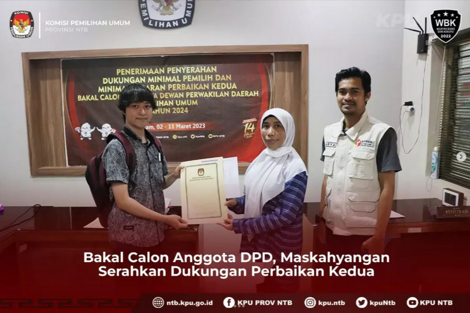 Sebelumnya, Bakal Calon Anggota DPD atas nama Maskahyangan dinyatakan Belum Memenuhi Syarat Dukungan Minimal Pemilih hasil Verifikasi Faktual Kesatu dengan jumlah dukungan MS sebanyak 1180 yang tersebar di 10 Kabupaten/Kota. Pada tahap penyerahan perbaikan kedua ini, dukungan yang diserahkan sebanyak 2008 dukungan yang tersebar di 4 Kabupaten/Kota, yaitu Kabupaten Bima, Kabupaten Lombok Barat, Kabupaten Lombok Tengah dan Kota Bima.