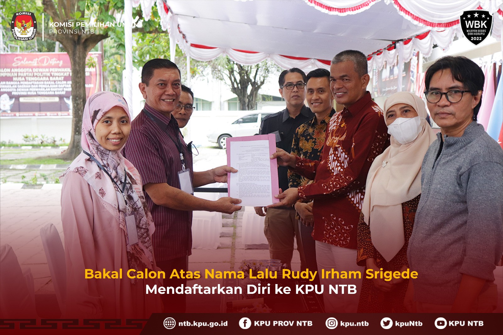 Berdasarkan hasil pemeriksaan, pendaftaran Bakal Calon DPD atas nama Lalu Rudy Irham Srigede dinyatakan Diterima, kemudian KPU Provinsi NTB memberikan Berita Acara Penerimaan Pendaftaran kepada Bakal Calon DPD.