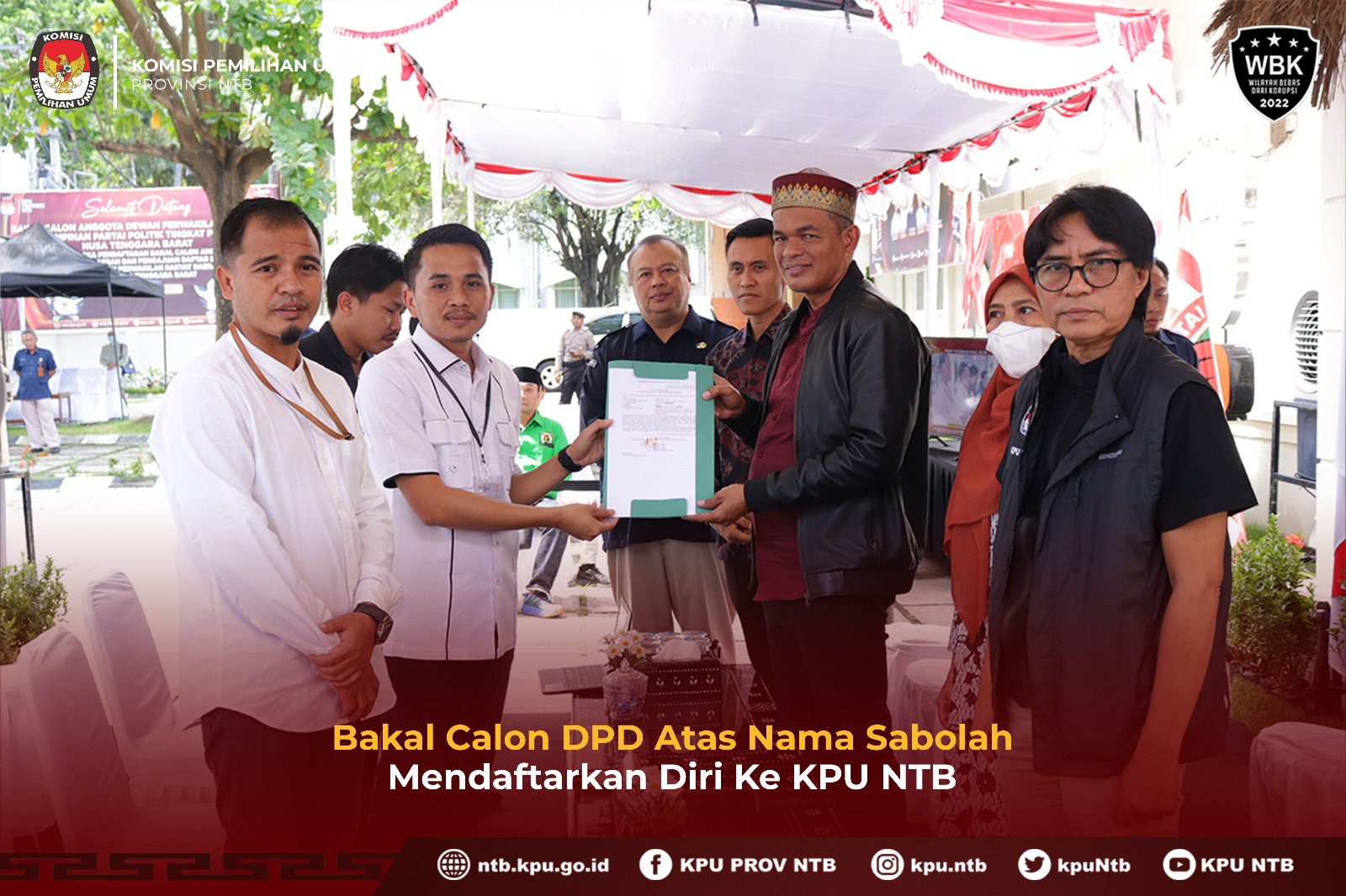 Berdasarkan hasil pemeriksaan, pendaftaran Bakal Calon DPD atas nama Sabolah dinyatakan Diterima, kemudian KPU Provinsi NTB memberikan Berita Acara Penerimaan Pendaftaran kepada Bakal Calon DPD.