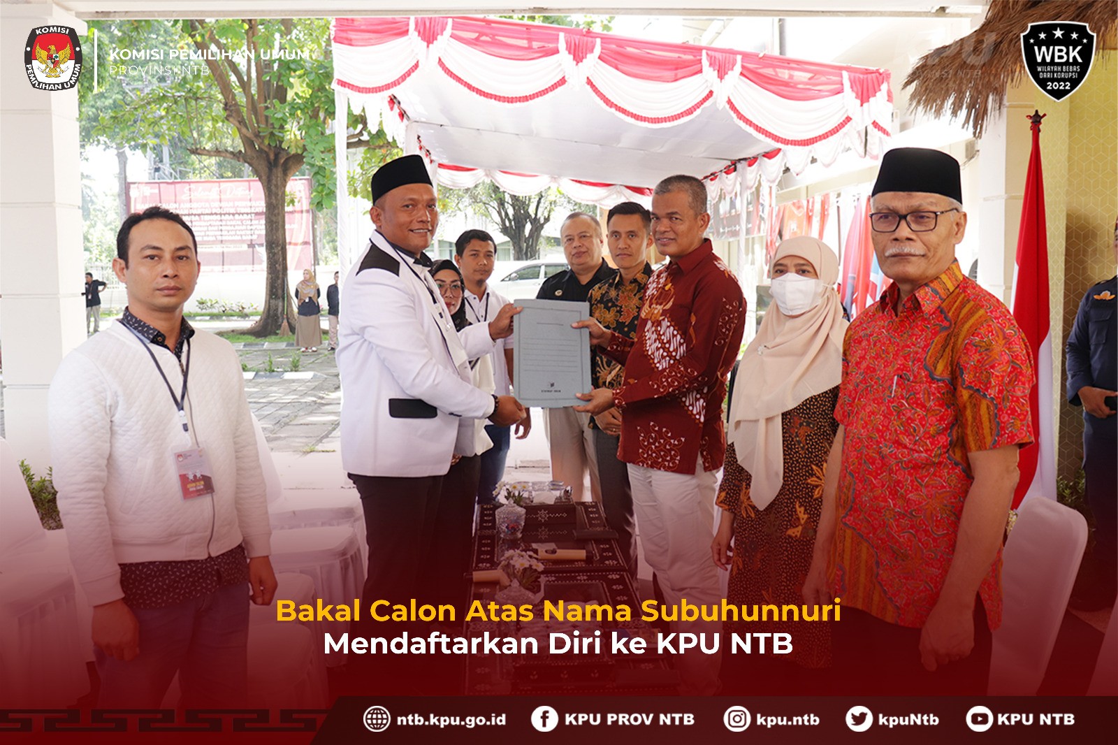 Berdasarkan hasil pemeriksaan, pendaftaran Bakal Calon DPD atas nama Subuhunnuri dinyatakan Diterima, kemudian KPU Provinsi NTB memberikan Berita Acara Penerimaan Pendaftaran kepada Bakal Calon DPD.