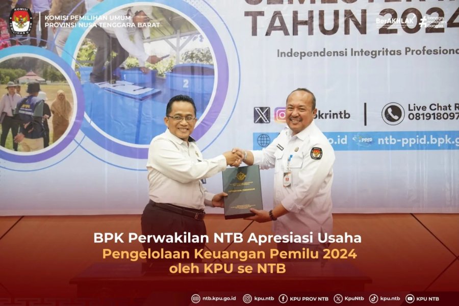 BPK Perwalikan NTB menyerahkan laporan periode tahun 2023 sampai dengan semester 1 tahun 2024 pada satuan kerja KPU wilayah Provinsi Nusa Tenggara Barat. Dalam sambutannya Kepala Subauditorat NTB II BPK Perwakilan NTB Abdul Choliq mengapresiasi usaha-usaha pengelolaan keuangan Pemilu 2024 yang telah dilakukan oleh satuan kerja KPU di wilayah Provinsi Nusa Tenggara Barat.