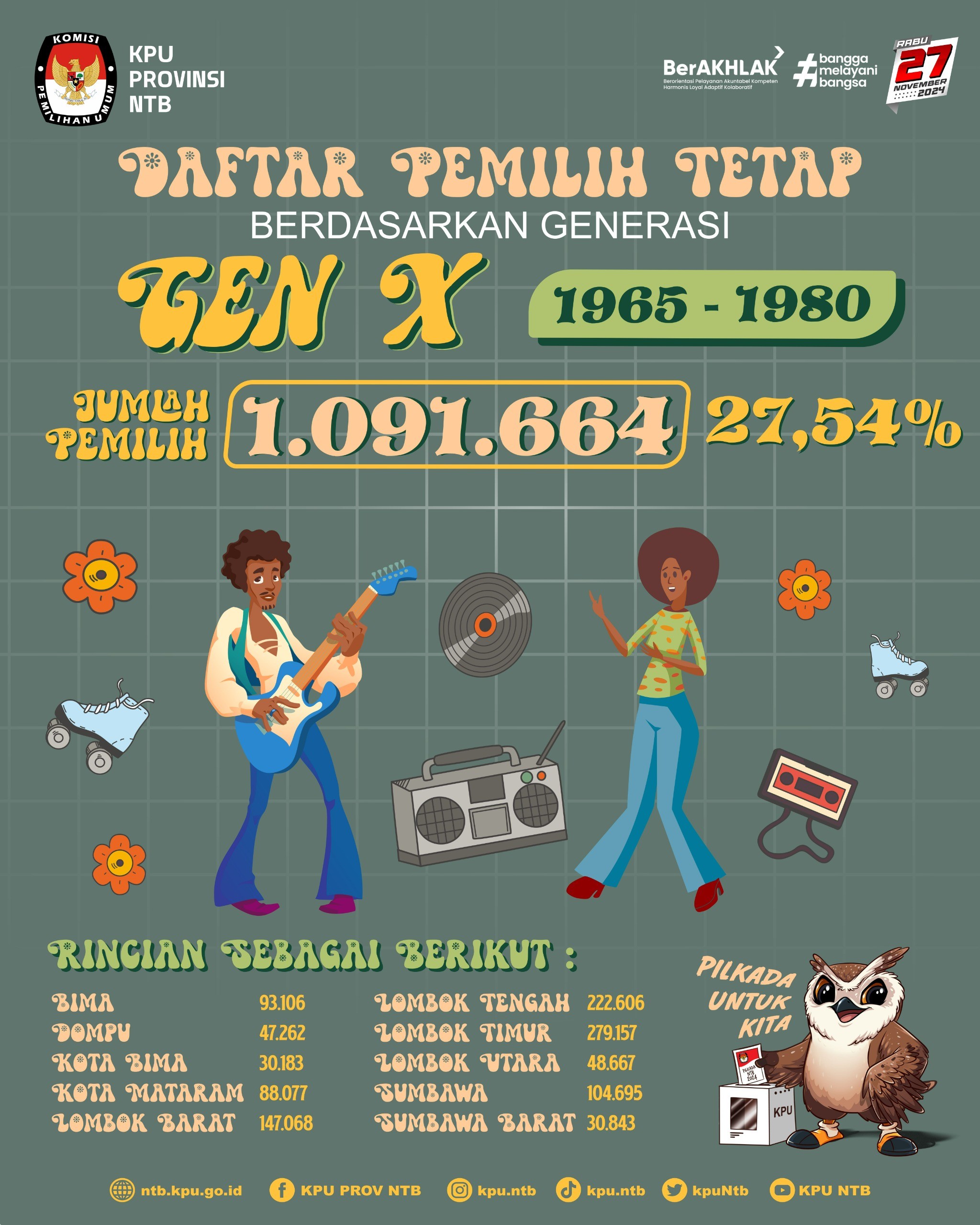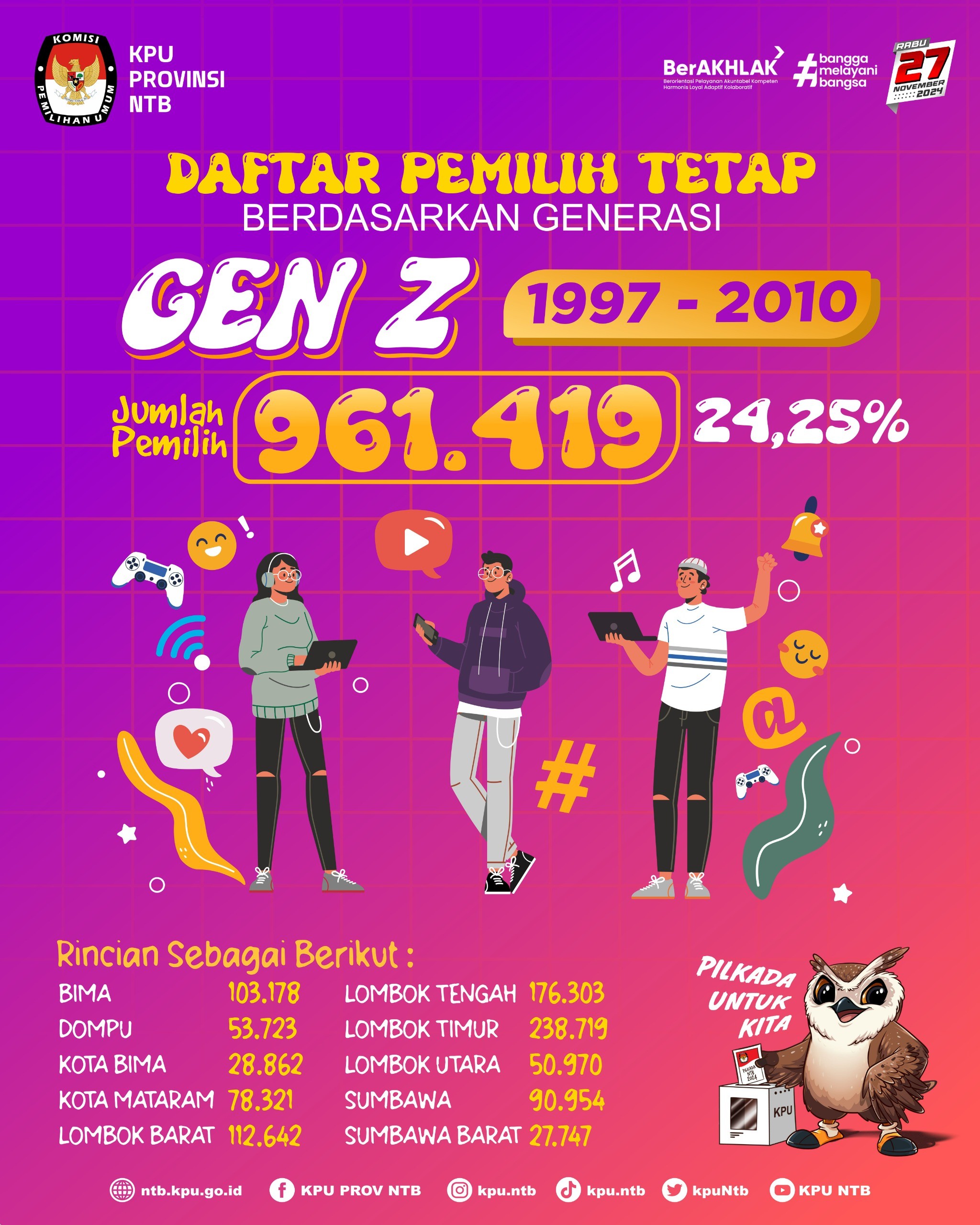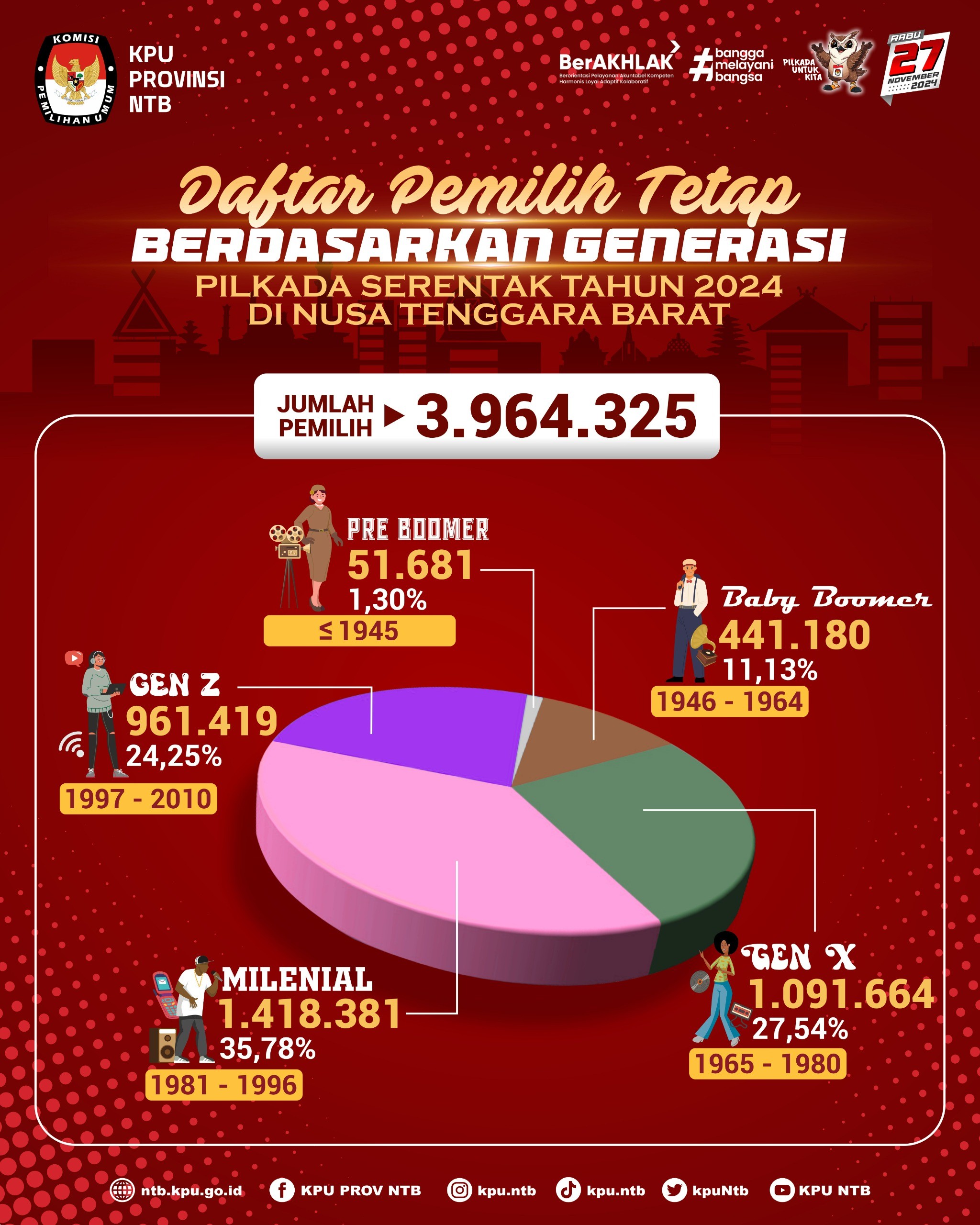 Daftar Pemilih Tetap Berdasrkan Generasi Pada Pilkada Serentak 2024 di NTB