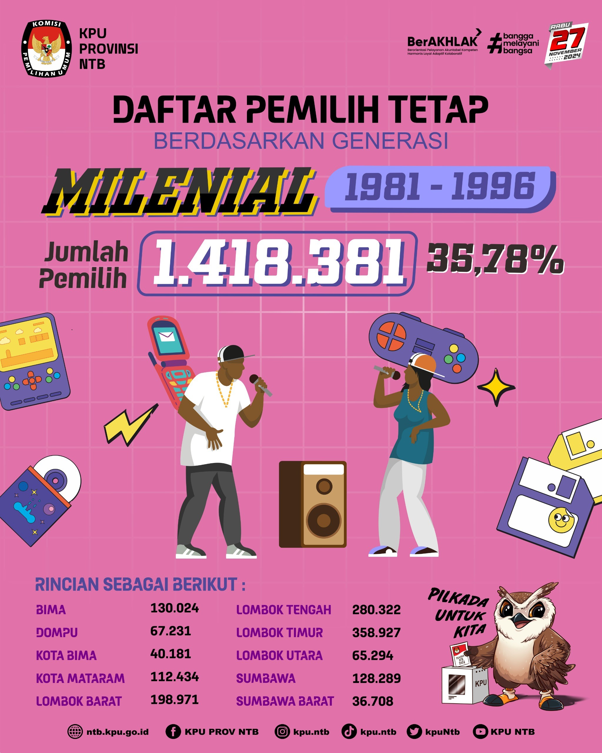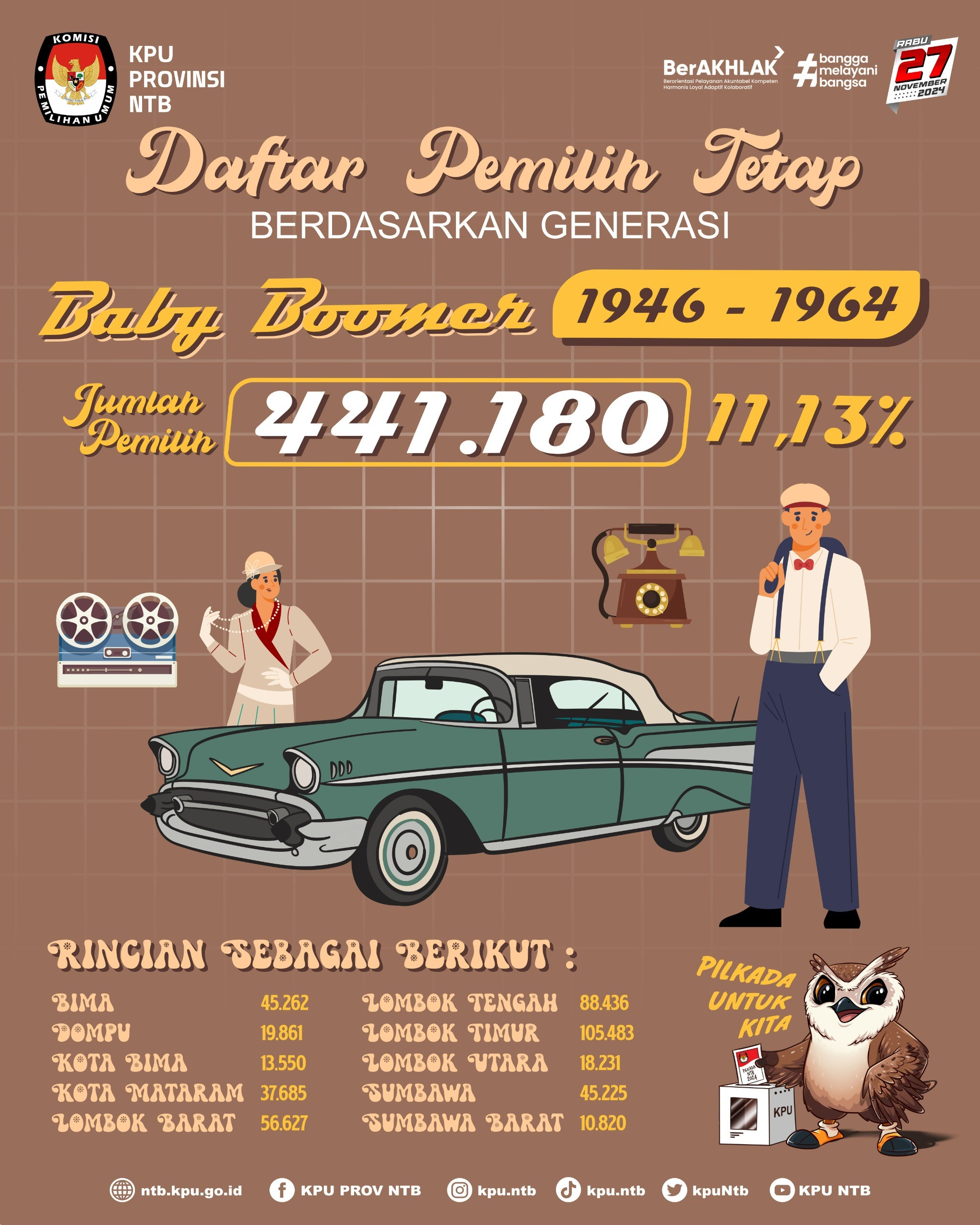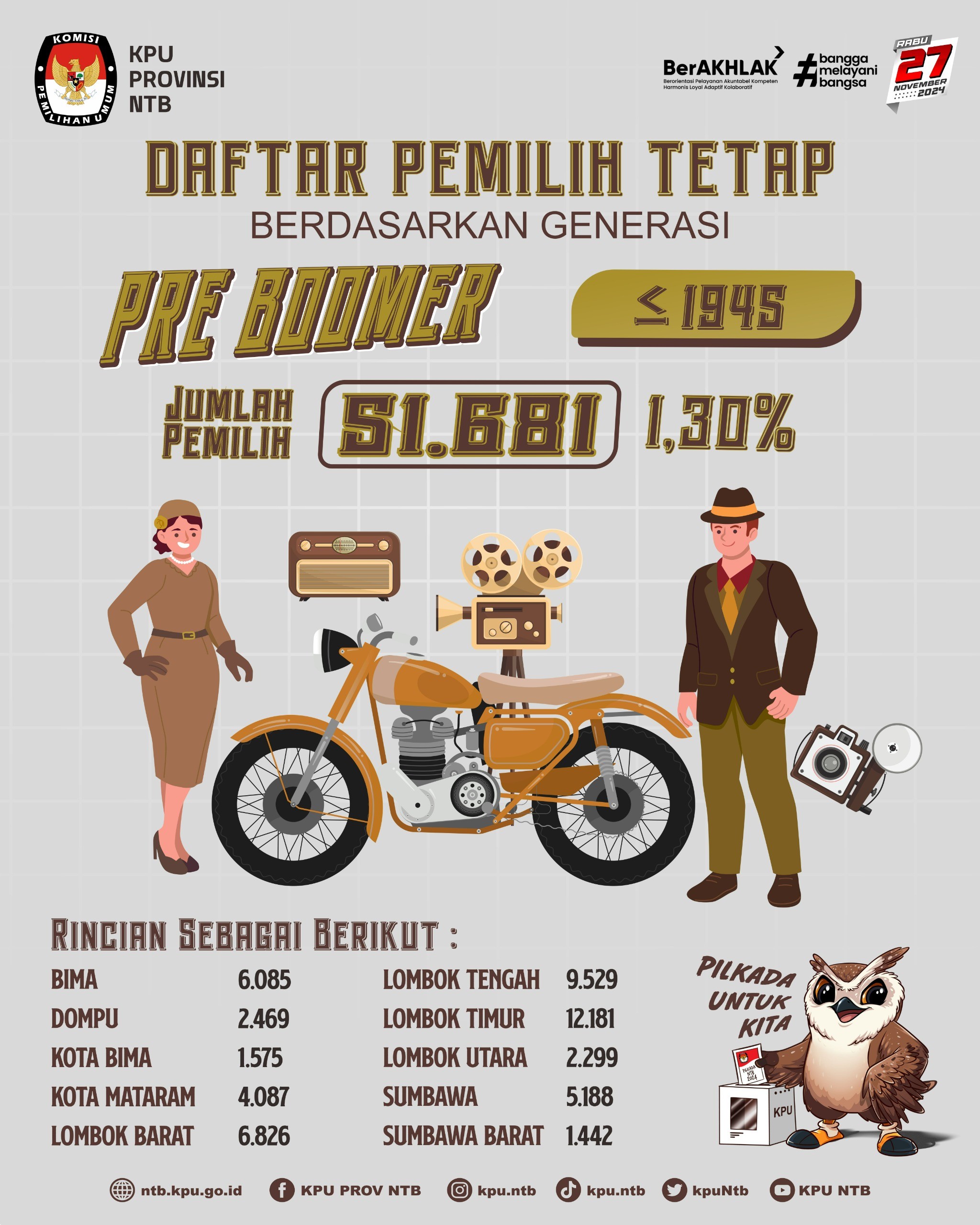 Daftar Pemilih Tetap Berdasrkan Generasi Pada Pilkada Serentak 2024 di NTB