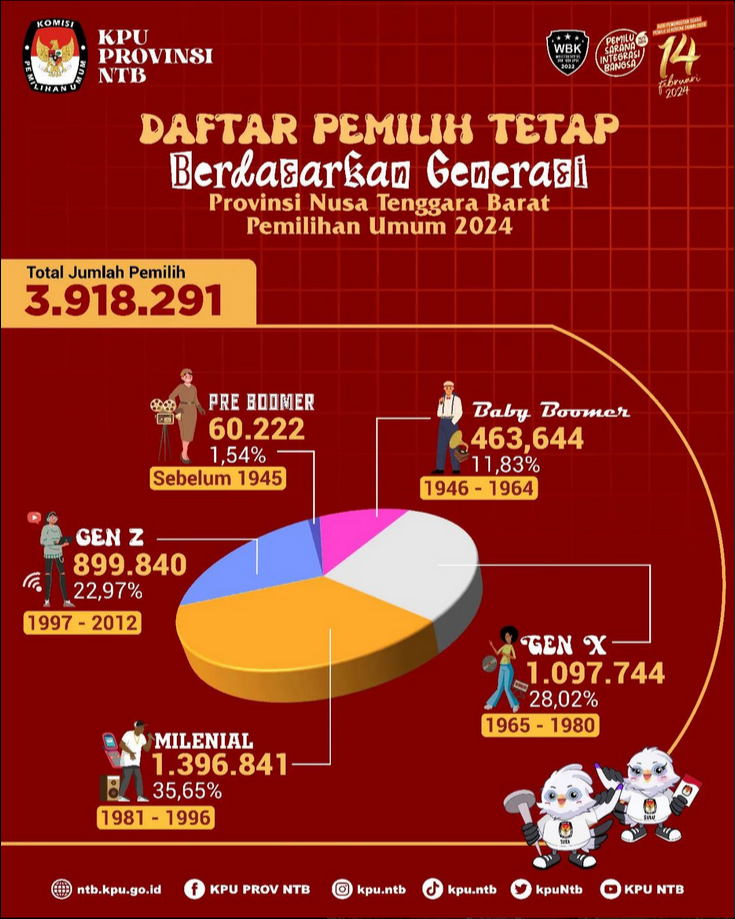 #kawanKPU berikut rincian Daftar Pemilih Tetap (DPT) tingkat Provinsi NTB pada Pemilu 2024 berdasarkan Generasi