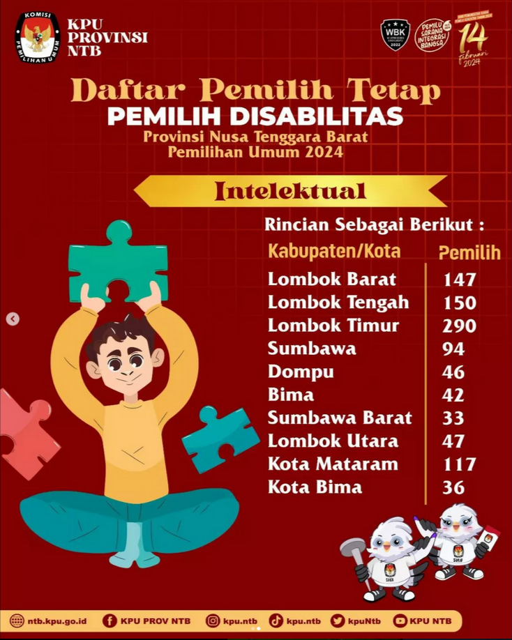 Daftar Pemilih Tetap Pemilih Disabilitas Intelektual Provinsi Nusa Tenggara Barat Pemilihan Umum 2024