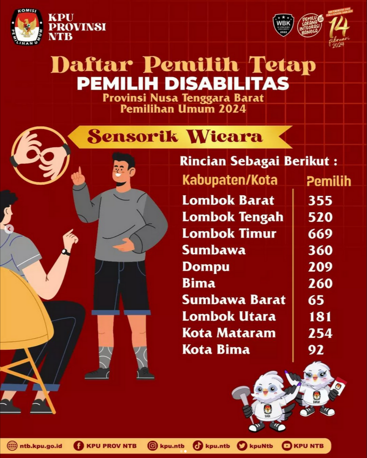 Daftar Pemilih Tetap Pemilih Disabilitas Sensorik Wicara Provinsi Nusa Tenggara Barat Pemilihan Umum 2024
