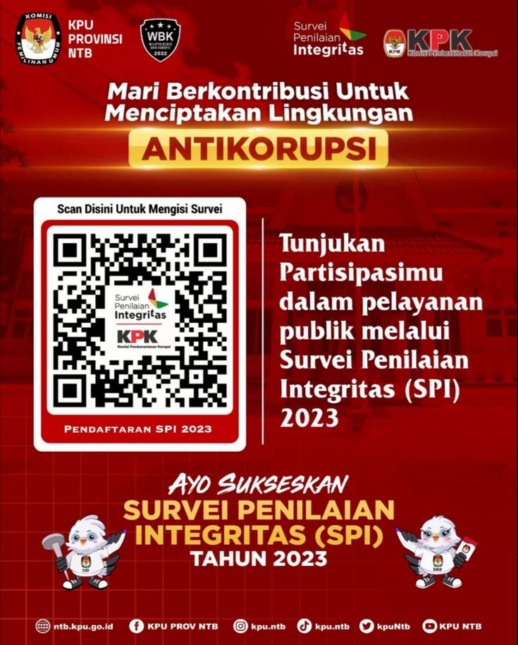 Diharapkan kepada seluruh pegawai dan masyarakat yang berhubungan dengan pihak KPU Provinsi NTB agar segera merespon ketika terpilih menjadi responden Survei Penilaian Integritas (SPI)