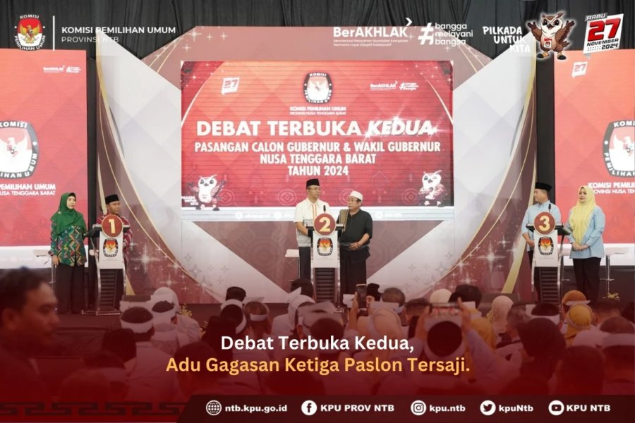Debat terbuka kedua pasangan calon Gubernur dan Wakil Gubernur NTB 2024 menyuguhkan saling adu gagasan antar pasangan calon.