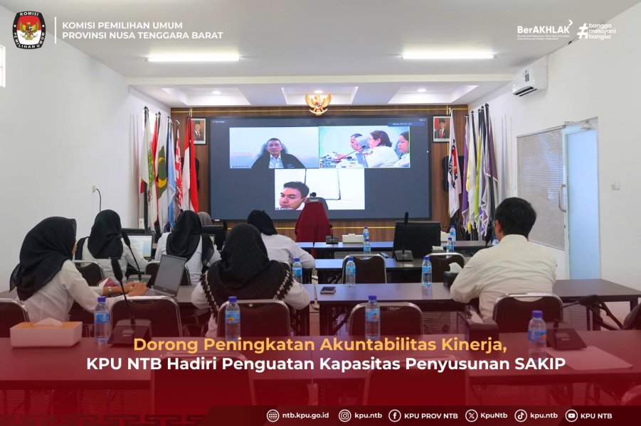 Dalam rangka meningkatkan pemahaman dan kualitas penyusunan dokumen Sistem Akuntabilitas Kinerja Instansi Pemerintah (SAKIP) Tahun 2025, KPU NTB hadiri kegiatan Penguatan Kapasitas Pejabat Struktural dan Fungsional dalam menyusun, mengelola, dan mengevaluasi dokumen SAKIP pada Hari Senin (14/7) yang dilaksanakan oleh KPU Republik Indonesia secara Hybrid.