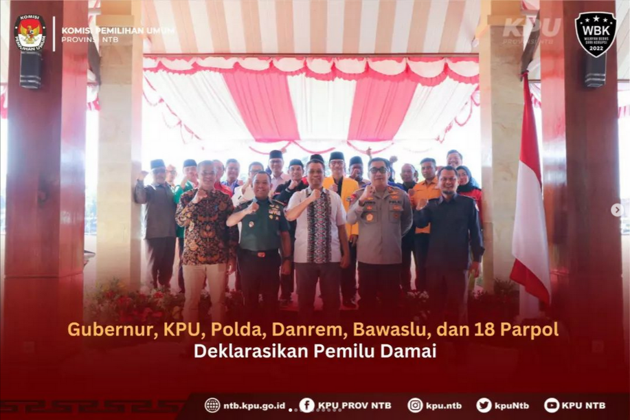 Ketua KPU NTB Suhardi Soud mengatakan, deklarasi Pemilu damai 2024 yang diinisiasi Kapolda NTB Djoko Poerwanto merupakan proses yang baik dan membuat pesta demokrasi ini menjadi terukur dan bisa dikelola dengan baik yang akan melahirkan situasi dari NTB untuk keberlanjutan pembangunan di level nasional.