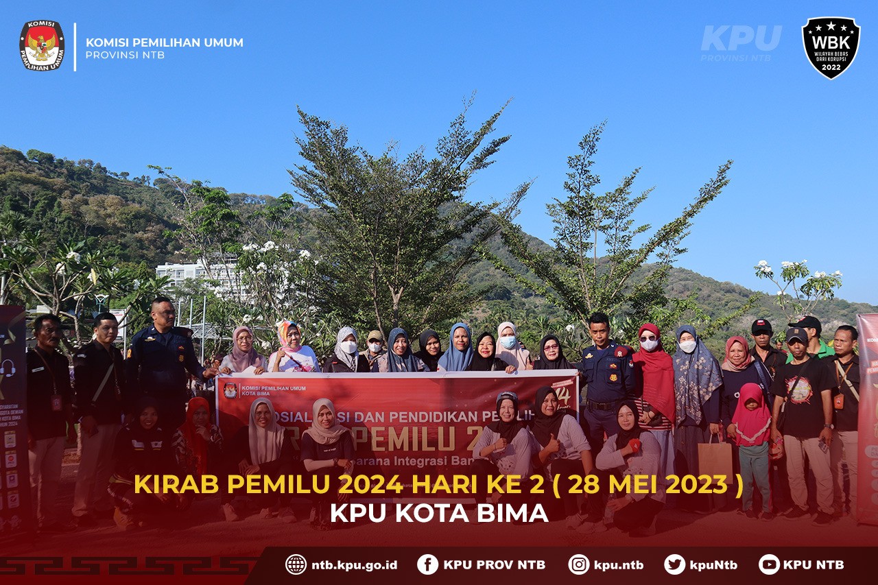Mengawali hari, KPU Kota Bima melakukan Sosialisasi bertempat di arena car free day Pantai Ama Hami Kota Bima, KPU Kota Bima melakukan sosialisasi dengan tatap muka langsung dengan segmen pemilih perempuan, pemilih muda dan pemula;