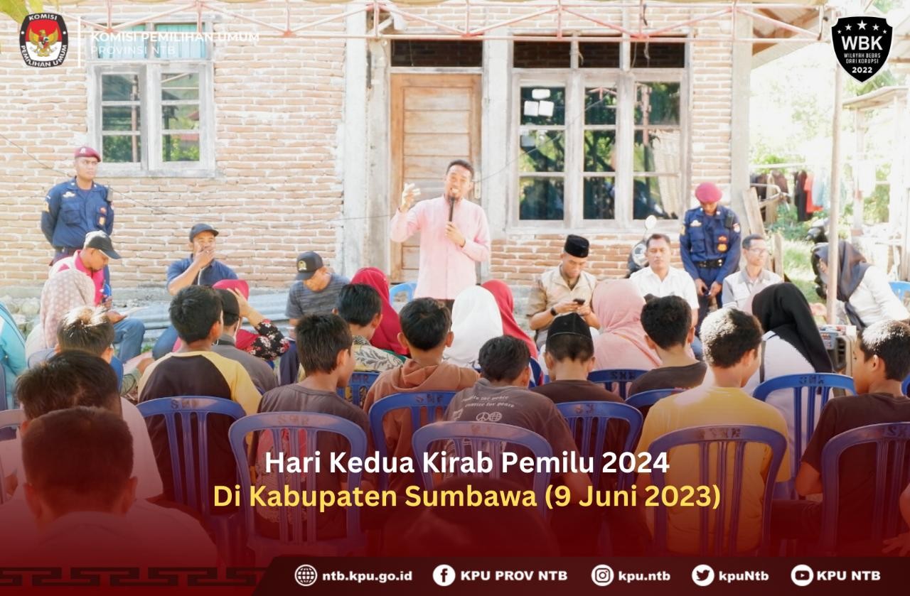 Hari Kedua (9/6) Tim Kirab Pemilu 2024 di Kabupaten Sumbawa melanjutkan sosialisasi Pemilu 2024 dengan mendatangi beberapa titik, yakni:
