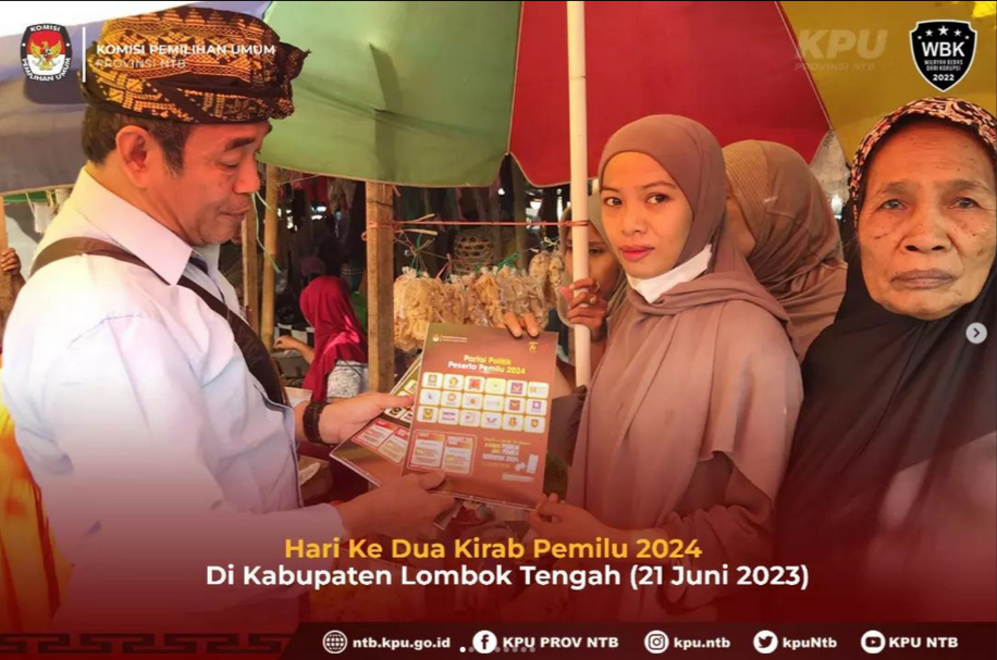 Pada Hari kedua Kirab Pemilu 2024 (21/6) di Lombok Tengah oleh KPU Lombok Tengah, Tim Kirab Pemilu 2024 berlanjut menyambangi masyarakat dibeberapa titik: