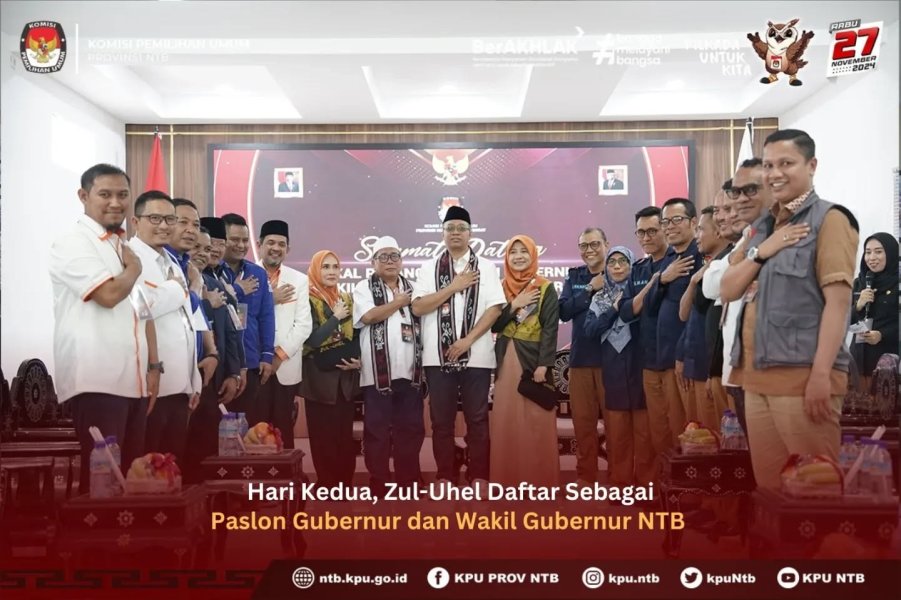 Bakal Pasangan Calon (Paslon) Gubernur dan Wakil Gubernur NTB, Zulkieflimansyah dan Suhaili (Zul-Uhel) mendaftar ke kantor KPU Provinsi NTB di hari kedua masa pendaftaran Pasangan Calon Gubernur dan Wakil Gubernur, Rabu (28/8).