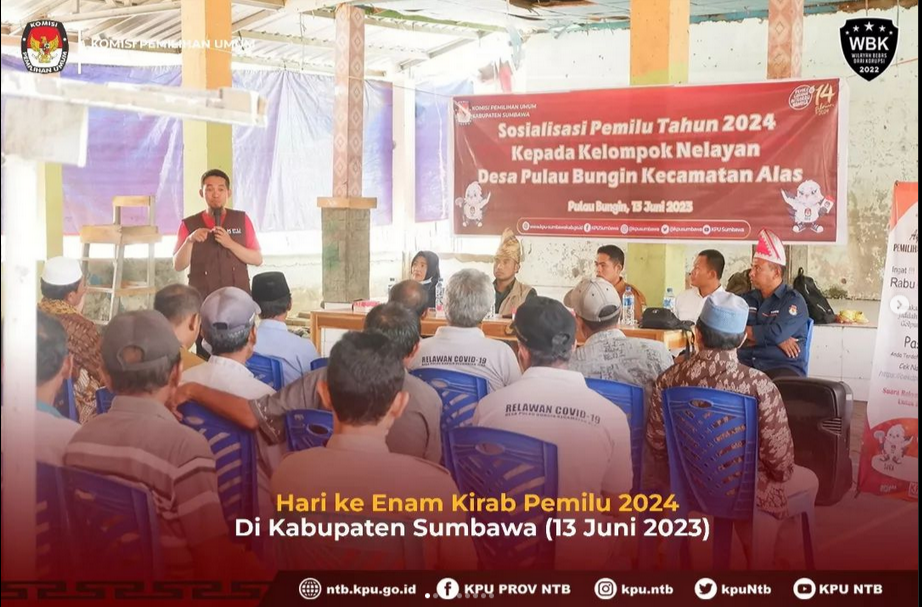 Di Kecamatan Alas, Tim Kirab Pemilu 2024 mendatangi para nelayan yang sedang beraktivitas di Pulau Bungin yang dihadiri oleh Plt. Alas, Kepala Desa Pulau Bungin, Tokoh Masyarakat, Tokoh Agama serta masyarakat.