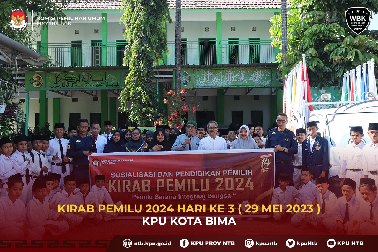 Hari Ketiga 29 Mei 2024, Tim Kirab Pemilu 2024 lakukan kegiatan sosialisasi dan pendidikan pemilih oleh KPU Kota Bima dengan mendatangi beberapa titik yakni;