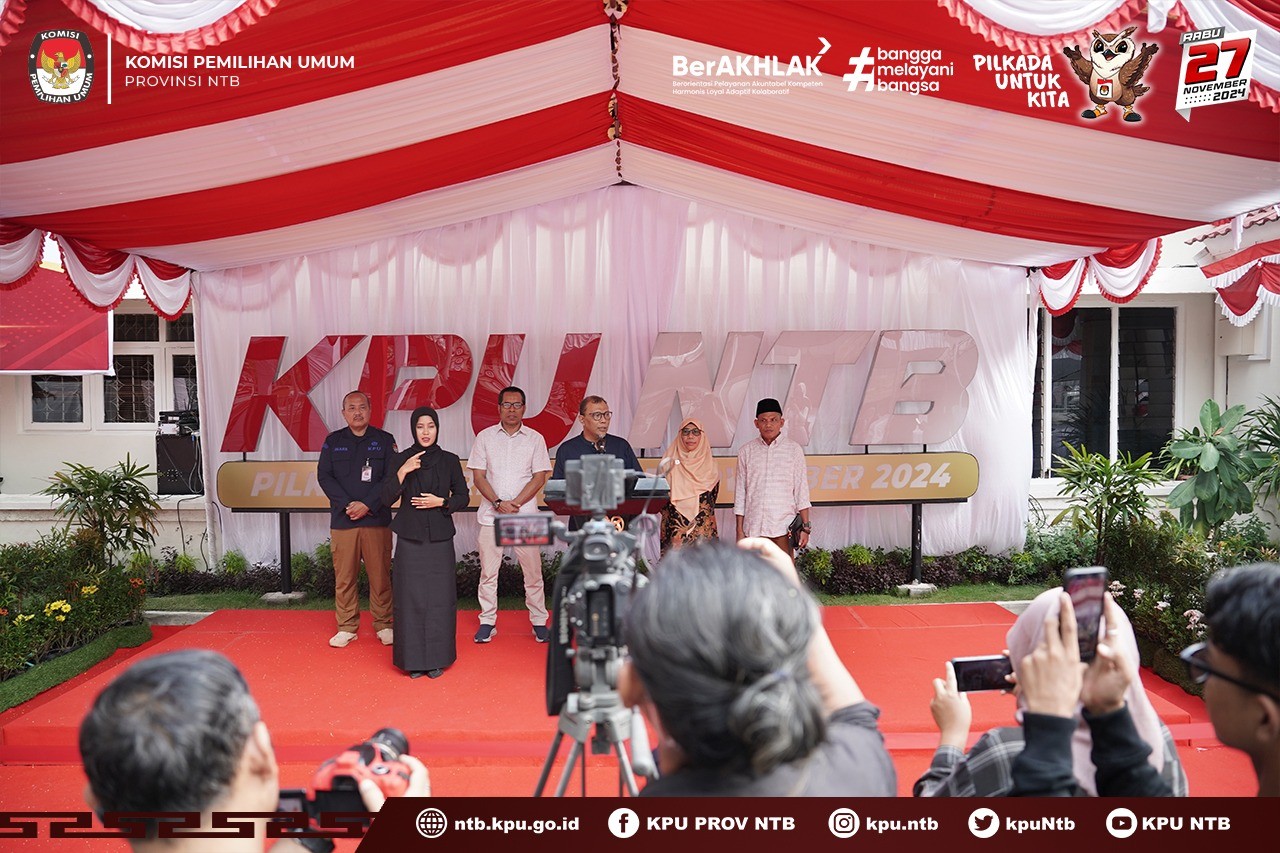 Untuk menutup pendaftaran di hari pertama ini, KPU Provinsi NTB mengadakan konferensi pers di halaman kantor KPU Provinsi NTB pada pukul 16.00 Wita.