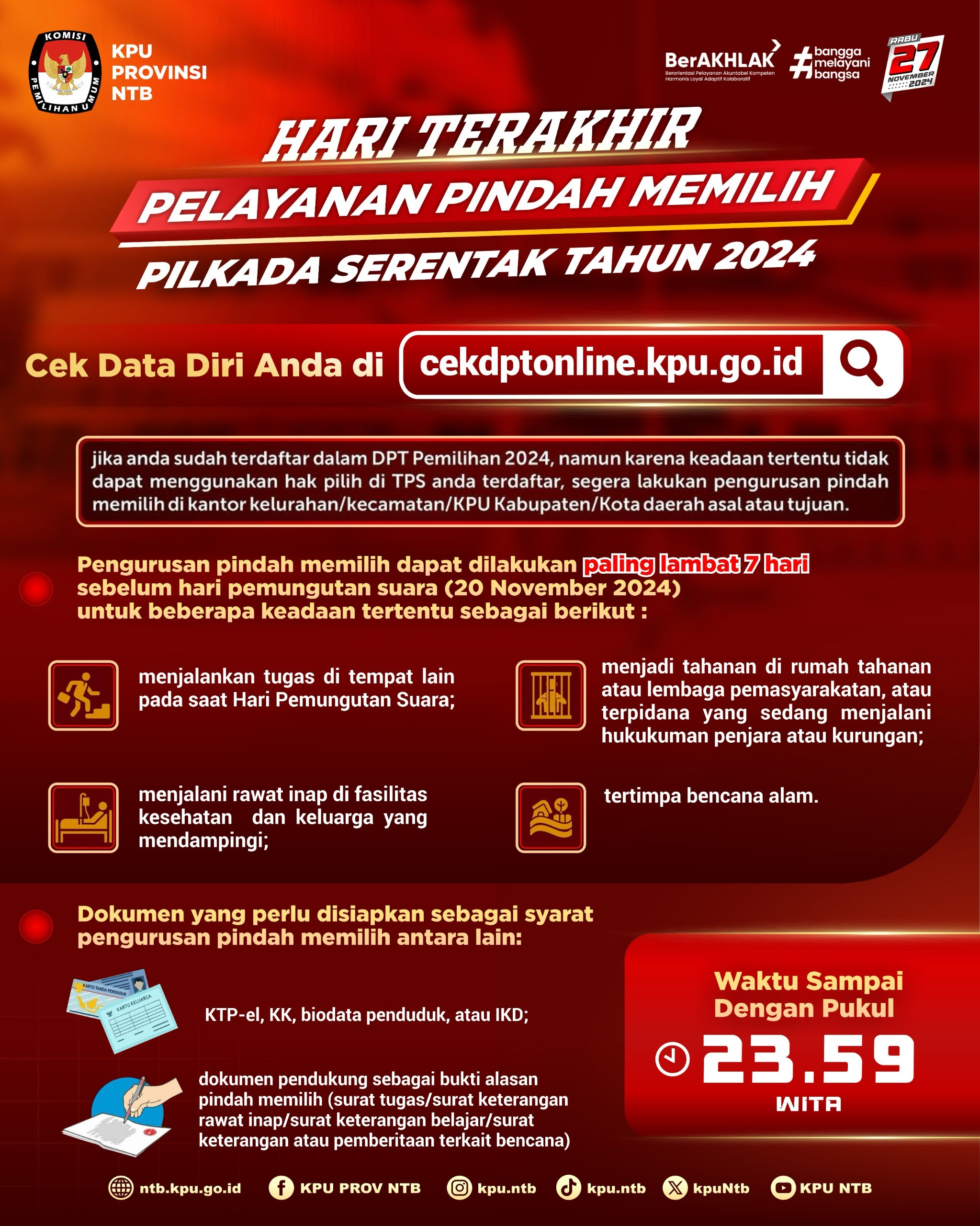 HARI TERAKHIR PELAYANAN PINDAH MEMILIH PILKADA SERENTAK TAHUN 2024