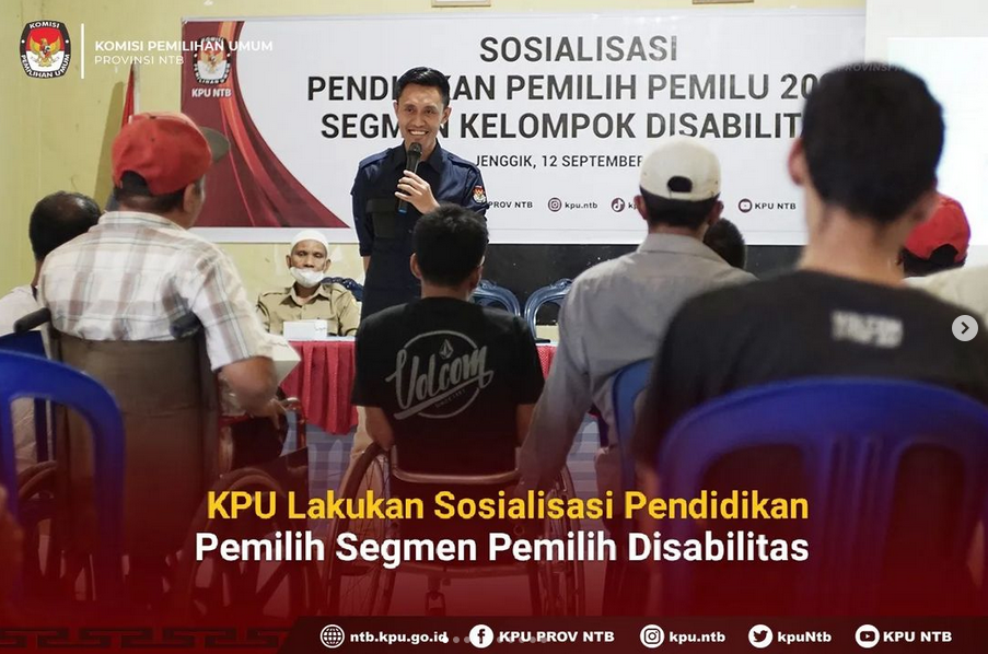 KPU Provinsi NTB lakukan Sosialisasi Pendidikan Pemilih Segmen Pemilih Disabilitas, Senin (12/9) di wilayah Desa Jenggik Kecamatan Terara Kabupaten Lombok Timur.