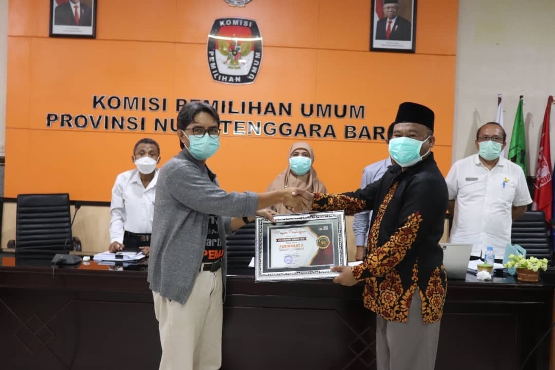 Dalam kesempatan itu KPU NTB memberikan penghargaan capaian Reformasi Birokrasi kepada KPU Kabupaten Bima sebagai Terbaik I dan KPU Kabupaten Lombok Timur sebagai Terbaik II.