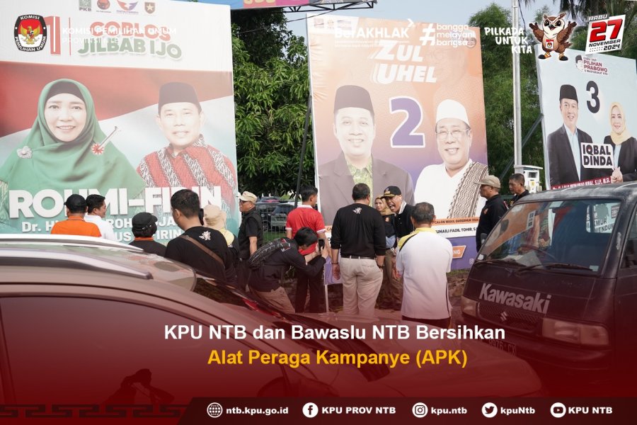 KPU Provinsi NTB Bersama Bawaslu NTB serta melakukan penertiban APK milik Paslon Pilgub NTB 2024 serta APK yang difasilitasi Pemasangan oleh KPU. Hal ini lantaran masih terpasang APK di masa tenang Pilkada yang dimulai 24 sampai dengan 26 November mendatang.