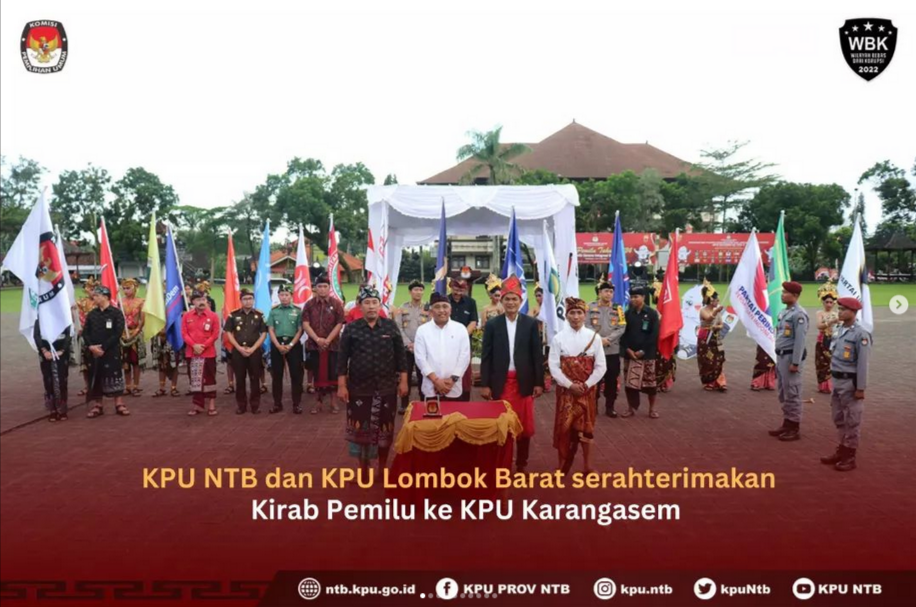 KPU NTB dan KPU Lombok Barat Serahterimakan Kirab Pemilu Ke KPU Karang Asem