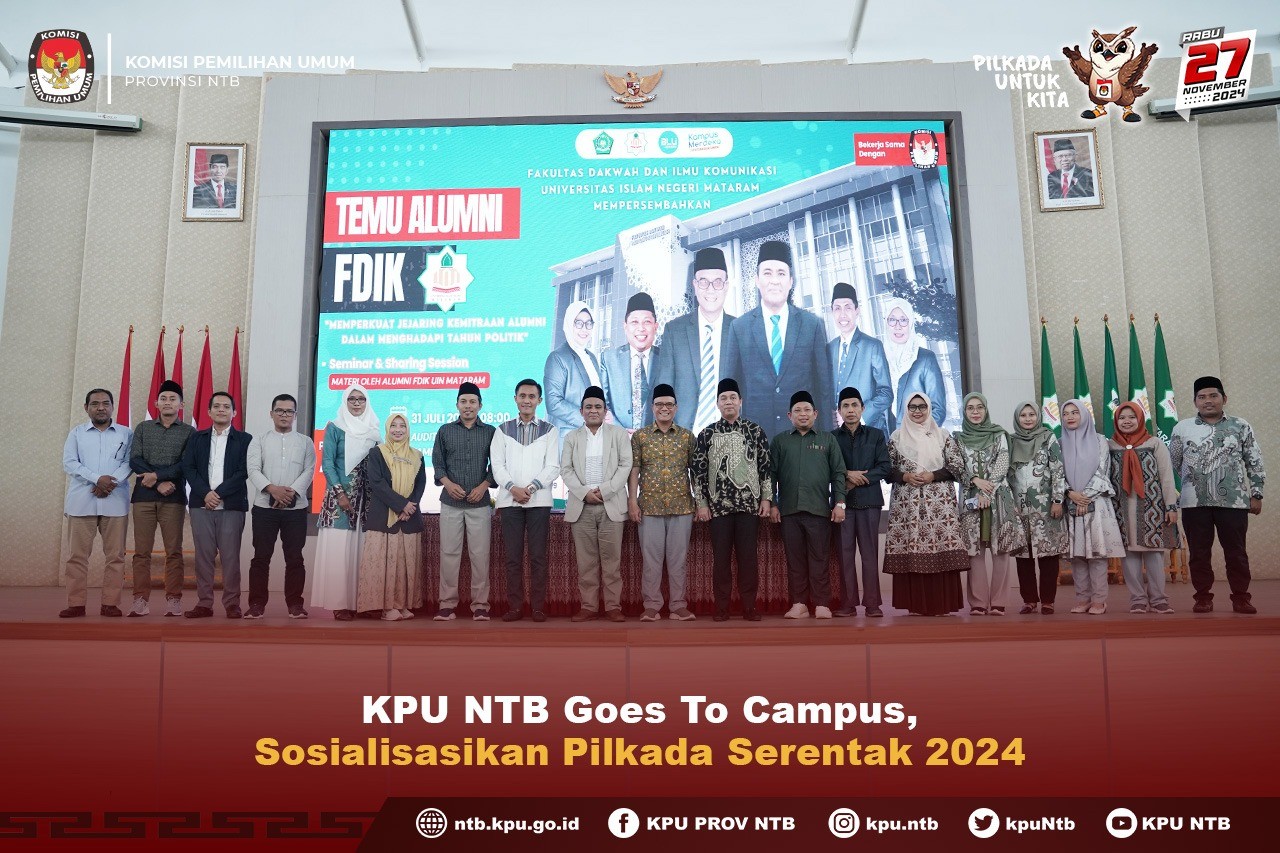 KPU Provinsi NTB gelar KPU Goes To Campus dalam rangka mensosialisasikan Tahapan Pilkada serentak 2024 kepada seluruh civitas akademika UIN Mataram. Hadir dalam acara tersebut pada dosen dan guru besar UIN Mataram serta seluruh civitas lainnya, Rabu (31/7)
