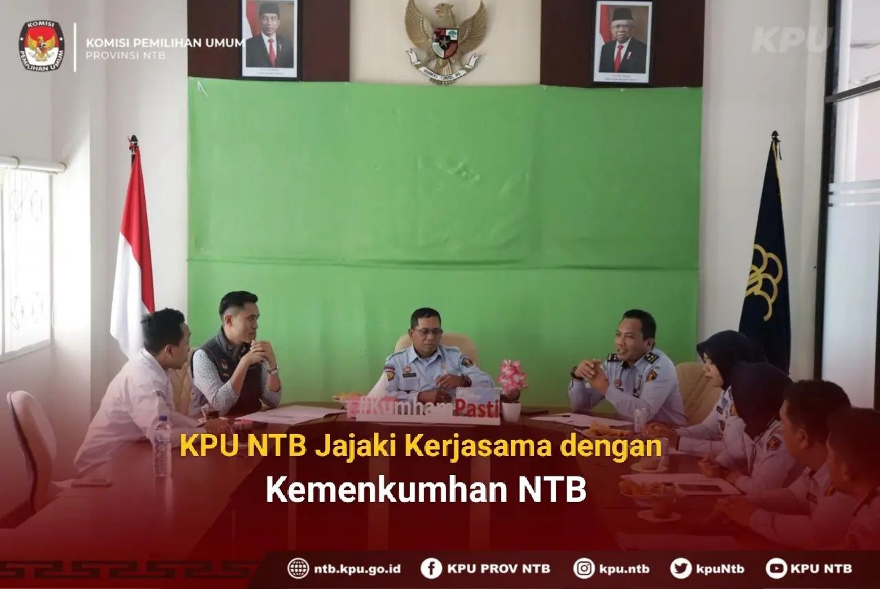 KPU Provinsi NTB sedang menjajaki kerja sama dengan Kantor Wilayah kementerian Hukum dan HAM Provinsi NTB. Kunjungan KPU Provinsi NTB, Senin (10/10) guna mendorong peningkatan partisipasi masyarakat khususnya kepada warga binaan di lembaga pemasyarakatan