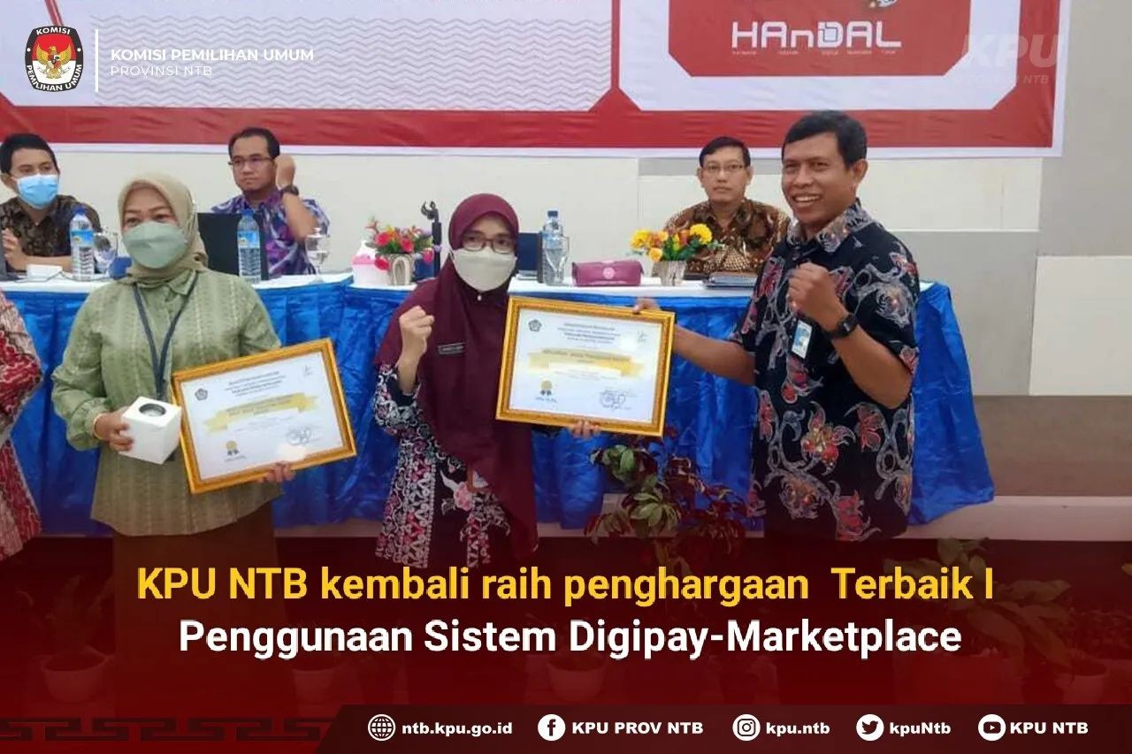 KPU NTB kembali raih penghargaan Terbaik I Penggunaan Sistem Digipay-Marketplace