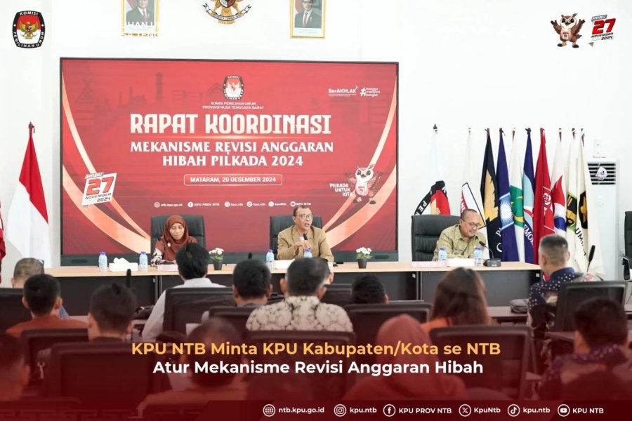 Laksanakan Kegiatan Rapat Koordinasi (Rakor) dengan KPU Kabupaten Kota se NTB, KPU Provinsi NTB meminta kepada jajarannya untuk mengatur Mekanisme Revisi Anggaran Hibah Pilkada Serentak 2024.