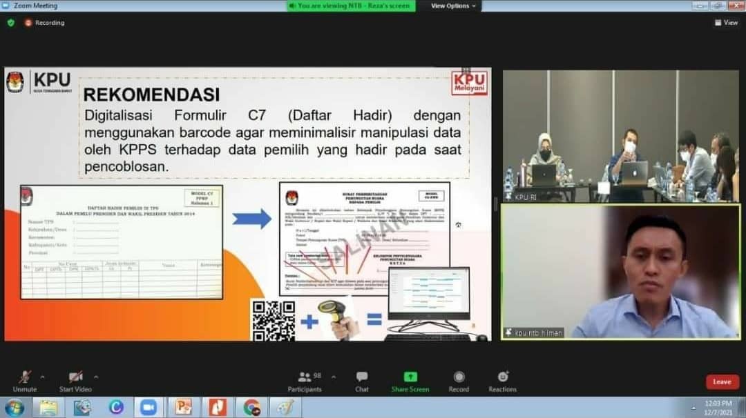KPU NTB paparkan Rencana Tindak Lanjut Program Pembekalan Pemateri Program Desa Peduli Pemilu dan Pemilihan (DP3) ke KPU RI, Selasa, (7/12) secara daring.