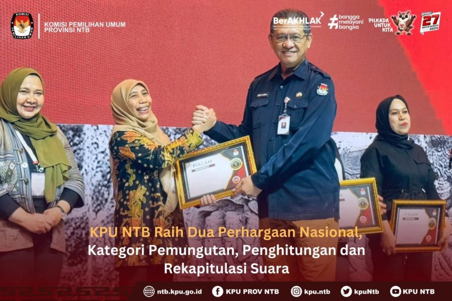 KPU NTB Raih Dua Penghargaan Nasional, Kategori Pemungutan, Penghitungan dan Rekapitulasi Suara