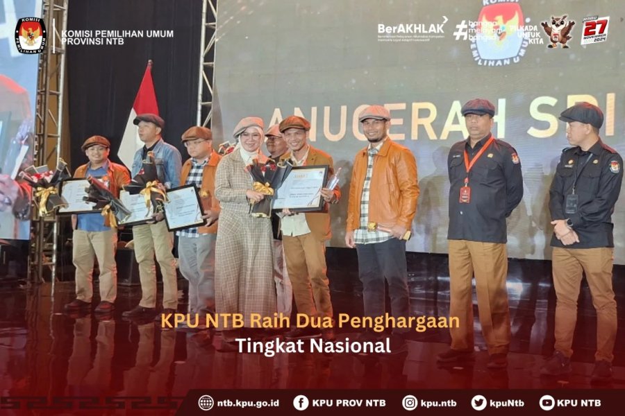 KPU Provinsi NTB meraih dua perhargaan tingkat nasional dari KPU Republik Indonesia. Perhargaan diberikan pada acara Rapat Koordinasi Evaluasi Hasil Pengawasan dan Pemberian Penghargaan Anugerah Sistem Pengendalikan Intern Pemerintah (SPIP) Tahun 2024, 10-12 Desember di Jakarta.