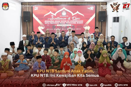 KPU Provinsi NTB menyantuni anak yatim Alfalah di lingkungan Dasan Agung Baru. kegiatan ini merupakan kegiatan rutin yang di selenggarakan KPU Provinsi NTB dan KPU se Indonesia guna memupuk kepedulian sesama.