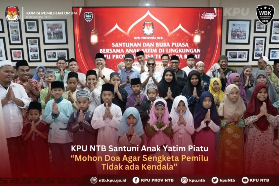 KPU Provinsi NTB berikan santunan kepada sejumlah anak yatim piatu. Hal ini dilaksanakan serentak di seluruh KPU Kabupaten/Kota di wilayah Indonesia.