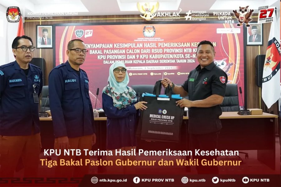 KPU NTB Terima Hasil Pemeriksaan Kesehatan Tiga Bakal Paslon Gubernur dan Wakil Gubernur
