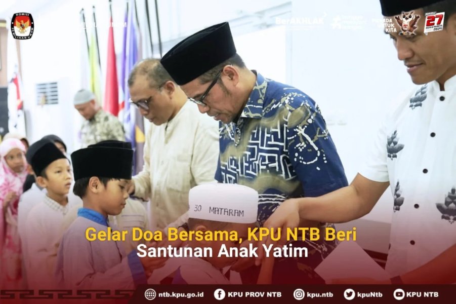 Hadir pada doa dan santunan anak yatim tersebut Ketua dan Anggota KPU Provinsi NTB serta pejabat struktural dan seluruh staf sekretariat KPU Provinsi NTB.