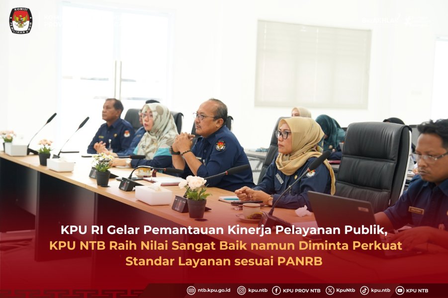 KPU Republik Indonesia menggelar rapat persiapan pemantauan dan evaluasi kinerja penyelenggaraan pelayanan publik (PEKPPP) tingkat nasional tahun 2025 secara daring Selasa (26/8). Dalam rapat tersebut, KPU Provinsi NTB mendapat penilaian Sangat Baik pada pelaksanaan PEKPPP Mandiri Tahun 2024, namun masih terdapat sejumlah catatan penting yang harus segera ditindaklanjuti, terutama dalam penyusunan standar layanan sesuai regulasi Kementerian PANRB.