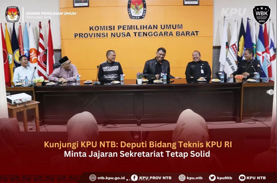 Deputi Bidang Dukungan Teknis KPU Republik Indonesia, Eberta Kawima bersama dengan Inspektur Wilayah III KPU Republik Indonesia, Mars Ansori Wijaya melakukan kunjungan kerja ke KPU Provinsi NTB pada Rabu, (23/8).